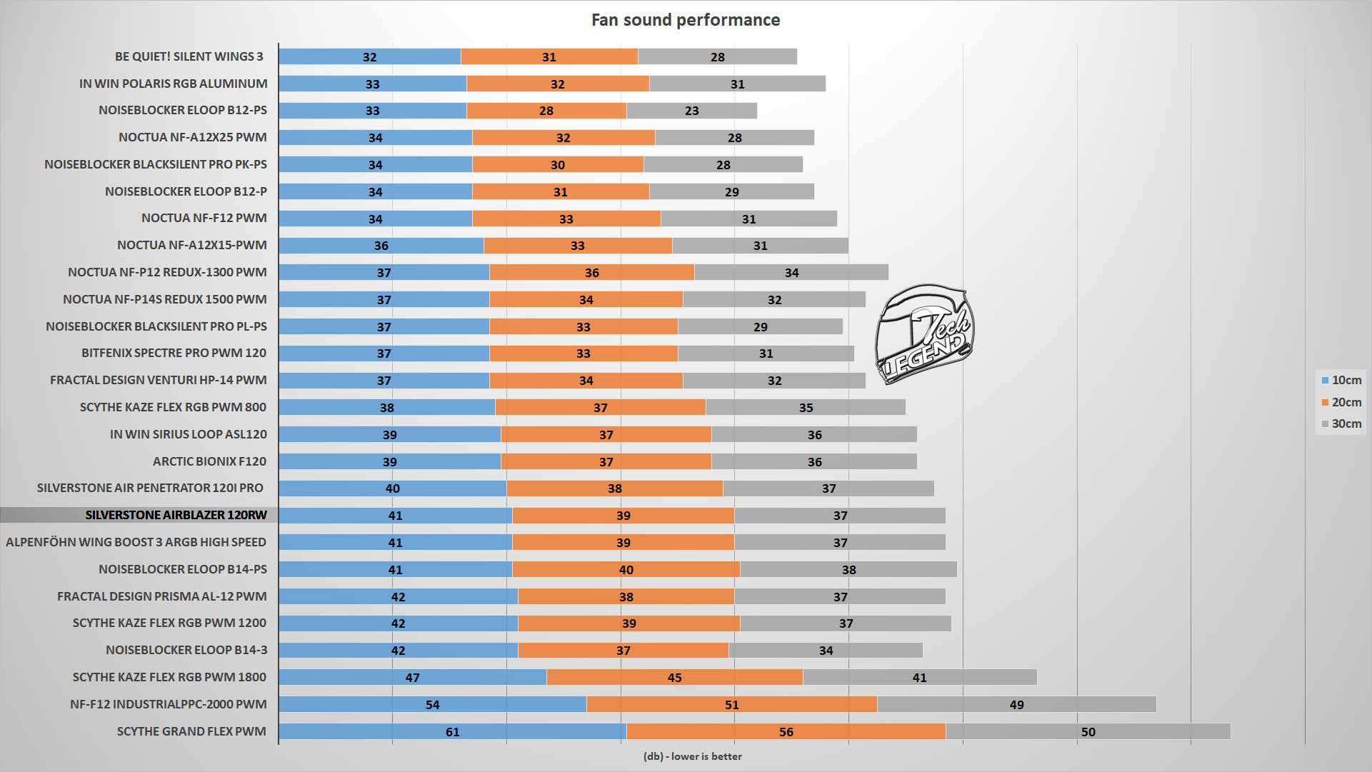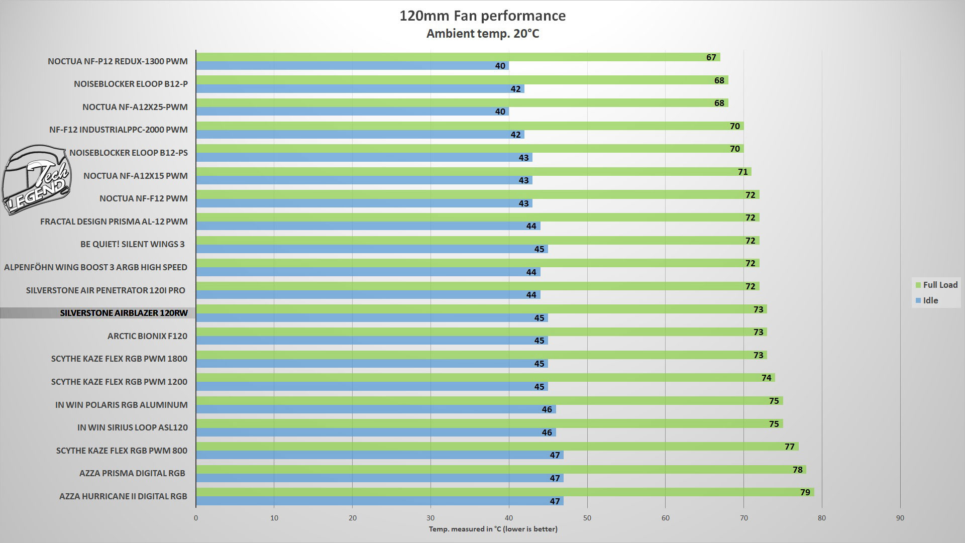 The 120mm fans has been tested using a 240mm CPU liquid cooler, the SilverStone Permafrost PF240W-ARGB at max. RPM.