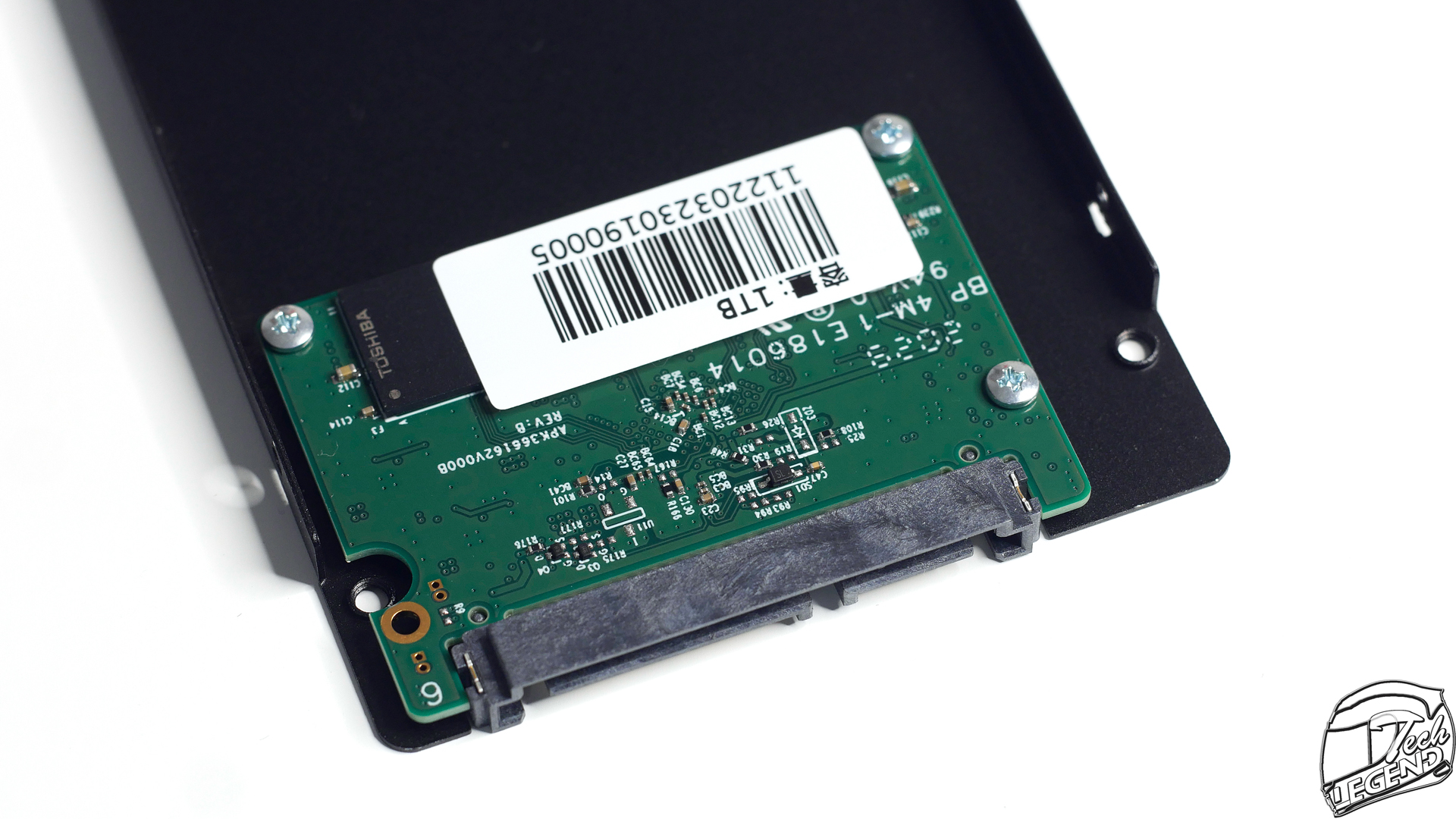 The back side of the SSD has a simple label which contains the technical information of the SSD. This includes the serial number of the SSD, the model number and operating voltage.